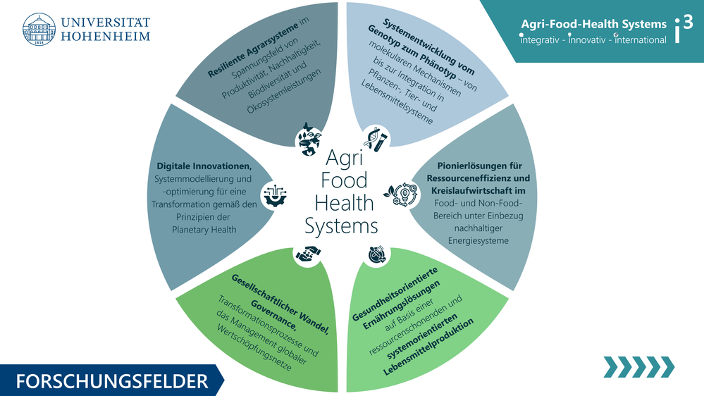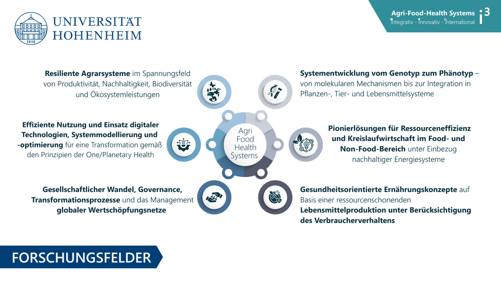 Der Agri-Food-Health Systems Research Hub i³ verfolgt das Ziel, wissenschaftlich fundierte, gesellschaftlich relevante und international anschlussfähige Forschungs- und Transferformate zu etablieren, die zur systemischen Transformation von Agrar- und Ernährungssystemen beitragen.